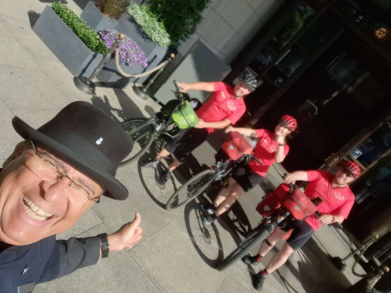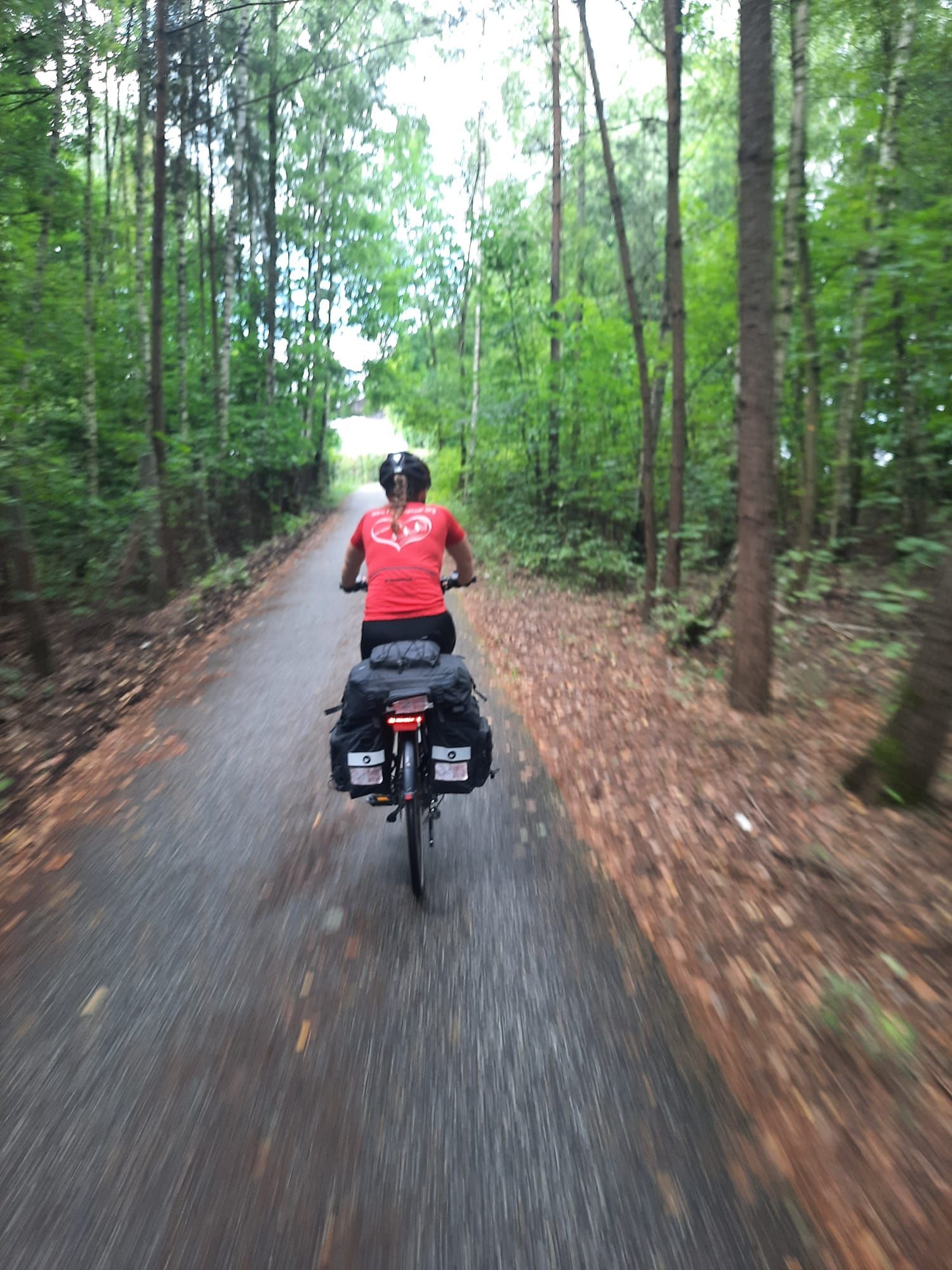This morning we set off from Berlin on our leg to Oranienburg. After a hearty breakfast at the hotel, we took a short detour to the fire station fountain for Uwe's sake. We continued along the Wall Cycle Path, past Checkpoint Charlie, and later along the Havel River towards Oranienburg. The route was very idyllic. The break in the beer garden was also worthwhile, as our table neighbors gave us a donation. It's always worth striking up a conversation.