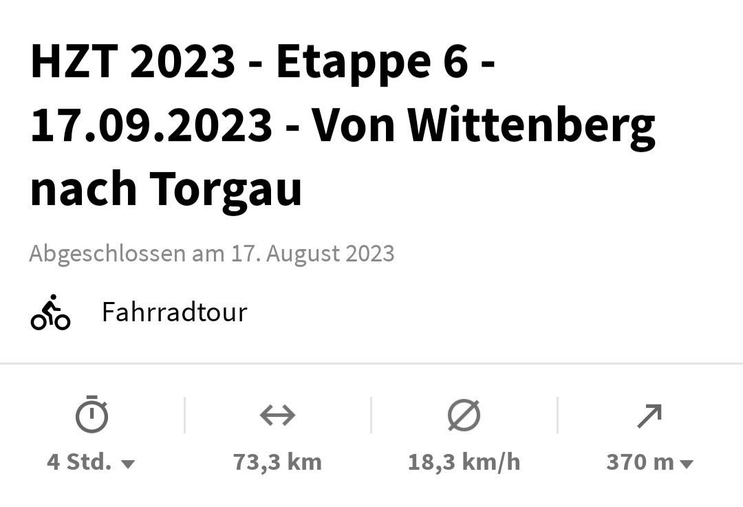 Stage 6 - Wittenberg to Werdau (OT of Torgau) - 73.3 kilometers