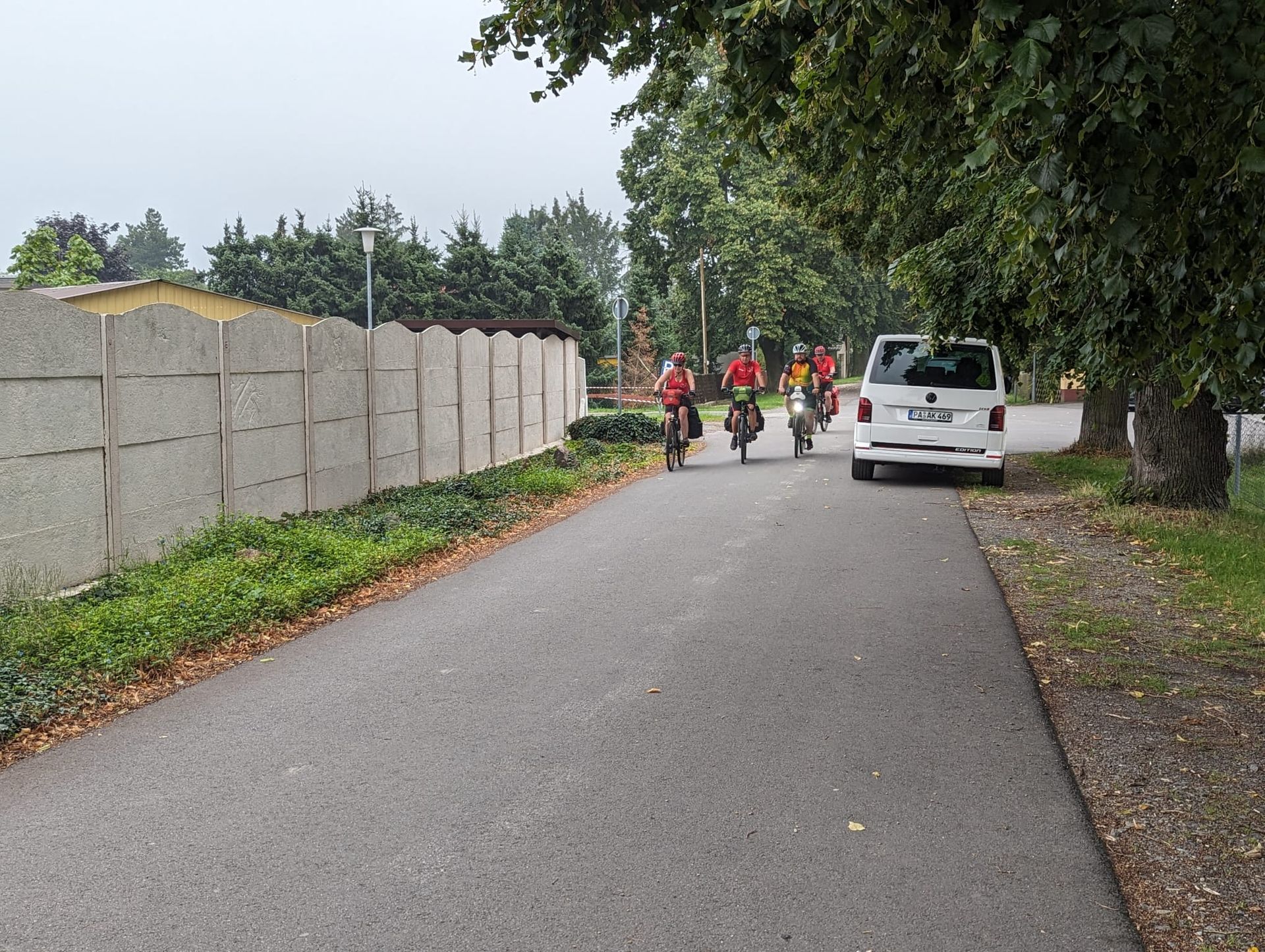 This morning, our stage to Riesa began. Andreas Führlich, chairman of the board of Sonnenstrahl eV, cycled with us for the first 40 kilometers, as it was a matter close to his heart.