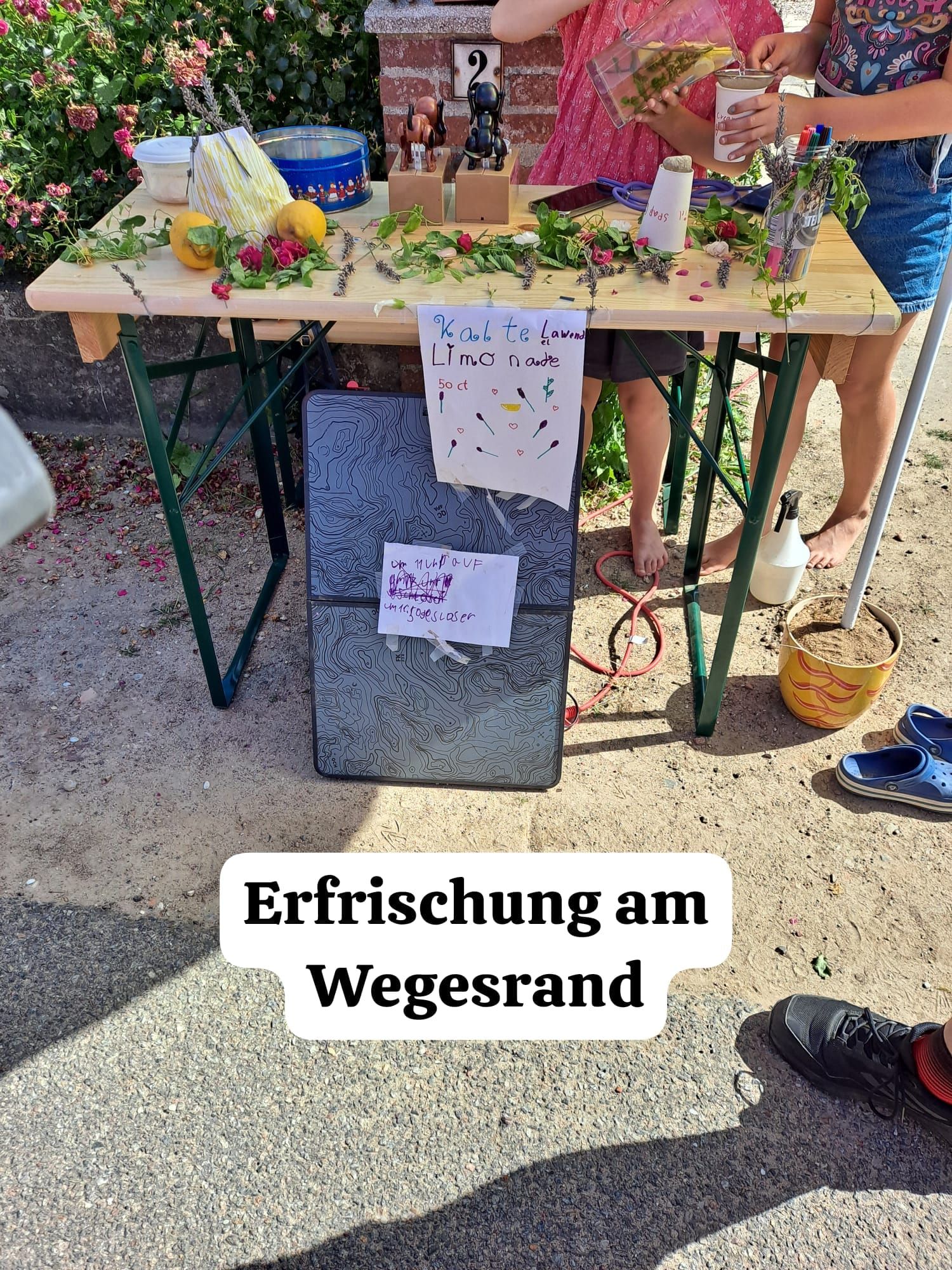 After our breakfast buffet at the Möwenpick restaurant, we saddled up our bikes and set off for Grömitz. After a quick check of the bikes, everything was in order. The tire pressure was constant, the spokes were tight, so everything looked good. The route initially took us along several roads, but also through nature. After 14 kilometers, we had another view of the Baltic Sea. Today's rides were like a bit of a roller coaster ride, as there were always short uphill stretches after each descent. The route continued through Heiligenhafen and later past a small, lovingly decorated lemonade stand. Here, two young girls had set up a stand selling chilled, homemade lemonade with lavender, peppermint, and honey. With so much love, we simply couldn't pass by and were happy to help supplement the couple's pocket money.