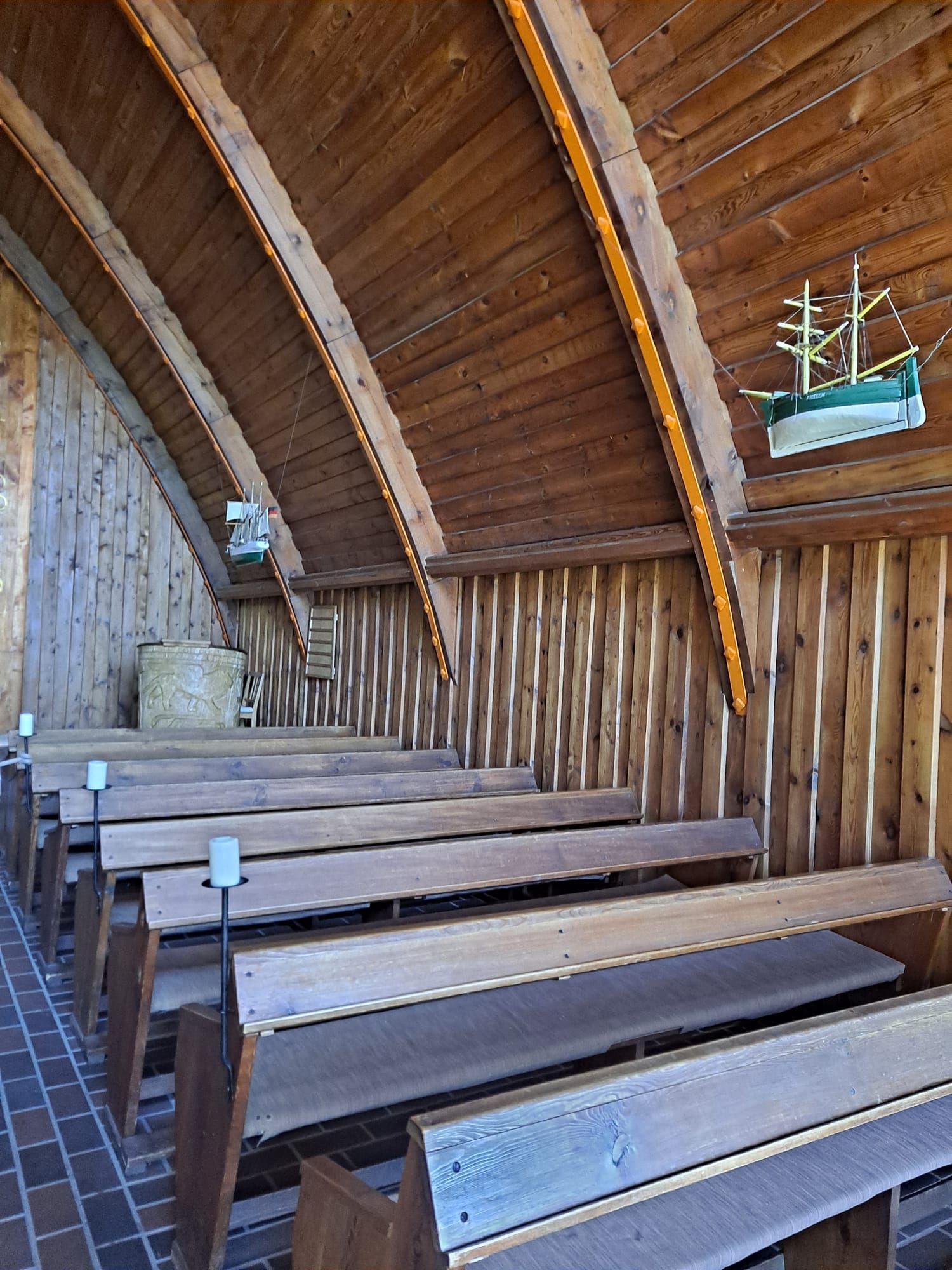 Shortly before Dierhagen, Philipp received a WhatsApp message from Viko Getzschmann, a baker from Falkenberg, saying that he had a friend here who was also a master baker, and that we were welcome to visit if we appreciated good baked goods. The Boldt bakery branch was only 300 meters away, so we didn't have to think twice about it. We thanked him very much for the recommendation, as we would have missed something. In Ahrenshoop, we visited the Schifferkirche (Sailors' Church). Philipp was actually planning to play the organ there. Unfortunately, that didn't work out. Philipp had asked for the opportunity, but the organist got in touch too late, and the key was unfortunately too well hidden ;-)