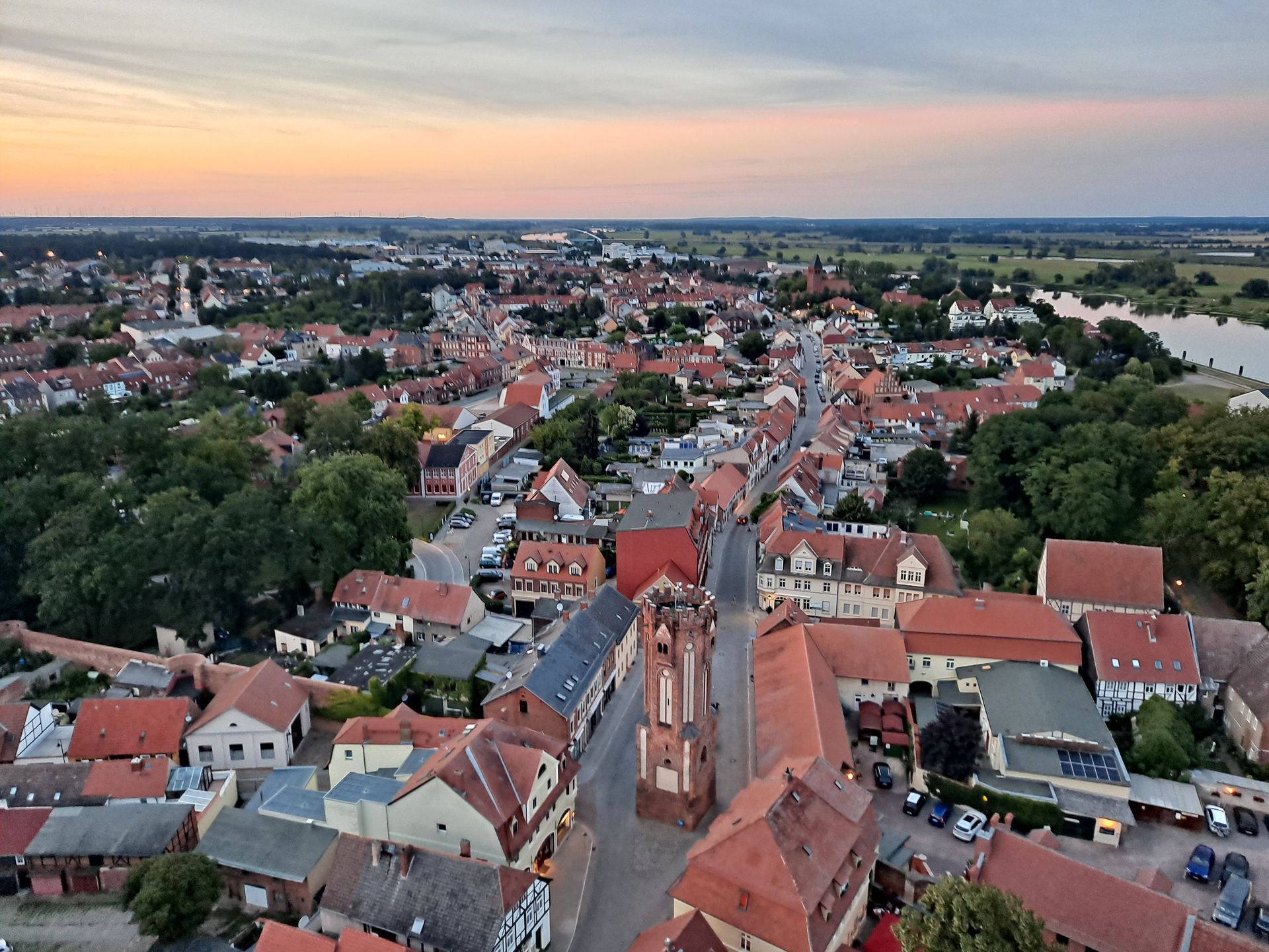 Linda y Philipp también se alegraron de reencontrarse con su antiguo pastor y amigo Otto-Fabian Voigtländer, quien trabaja aquí desde el 1 de julio de 2024. Cenamos con él y Alexander. Un momento especial, además del concierto, fue subir a la torre y disfrutar de la vista de la hermosa ciudad de Tangermünde. Uwe contó unos 270 escalones. Pero la vista valió la pena. Al subir, de vez en cuando se podía avistar algún Tauber, al que le gusta refugiarse en los respiraderos.