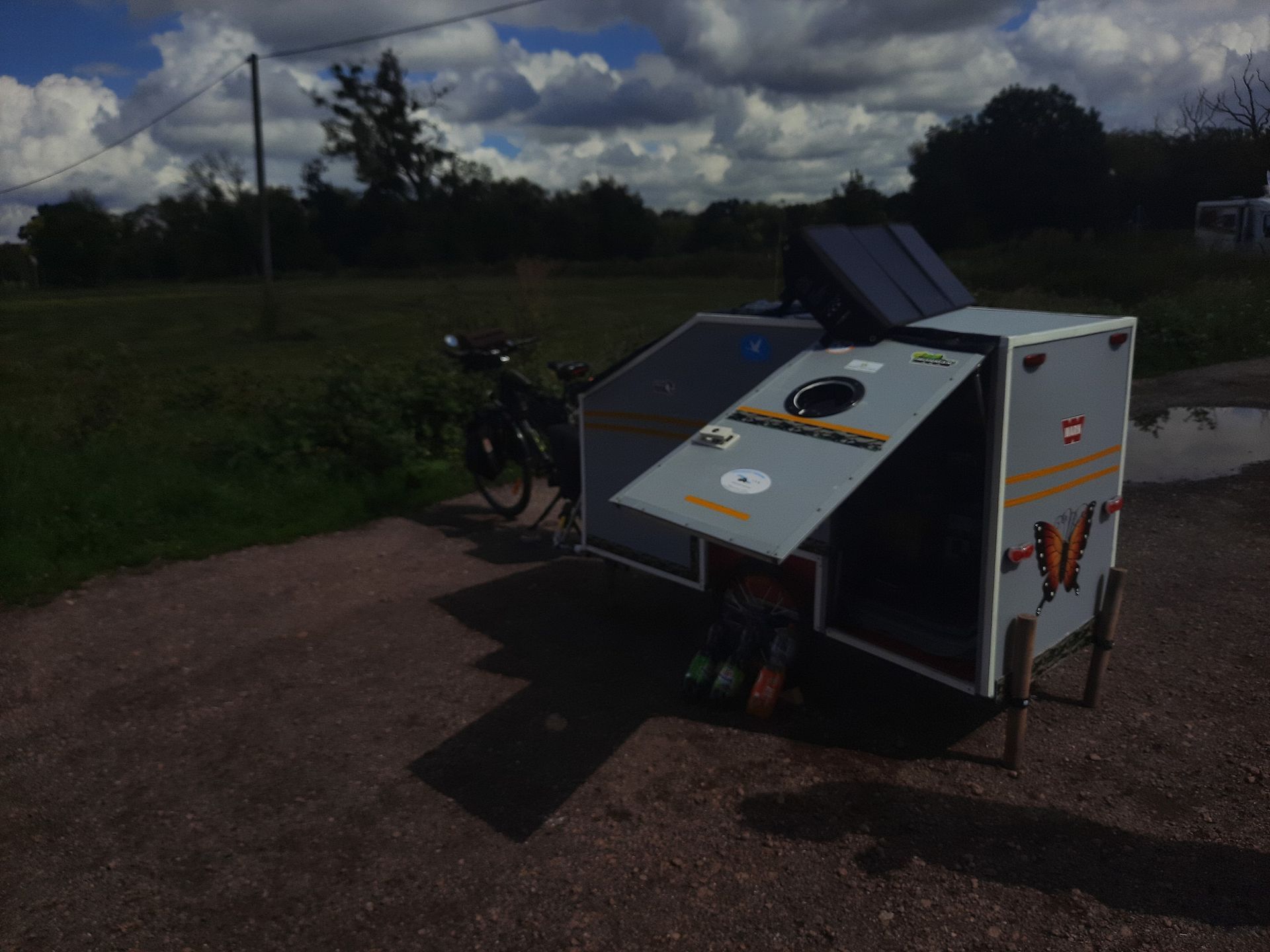 En Coswig conocimos a un hombre que viaja en bicicleta de una forma muy especial. Tiene su propia caravana de bicicletas en forma de remolque. Nunca habíamos visto nada igual y queríamos compartirlo con ustedes.
