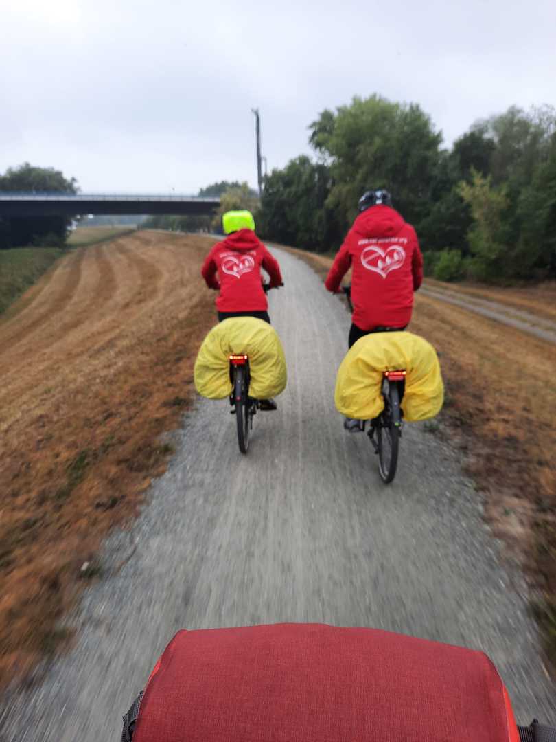 Normalmente hubiéramos querido salir temprano hoy, ya que nuestra etapa más larga del Herzenstour 2022 estaba en la agenda. Cuando Uwe revisó el radar de lluvia, sugirió esperar media hora más. Hemos aprendido de nuestro error del año pasado. De camino a Verden, rodamos con el frente de lluvia todo el tiempo. Esta vez, lo dejamos pasar. Todavía lloviznaba un poco y tuvimos que recurrir a nuestras chaquetas del Herzenstour, pero en general fue soportable y no llegamos a nuestro destino completamente empapados otra vez.