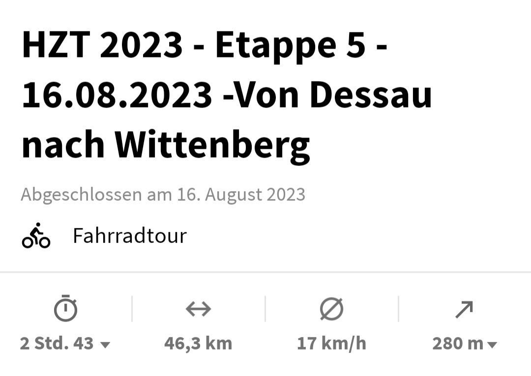 Etappe 5 - Dessau nach Wittenberg - 46,3 Kilometer