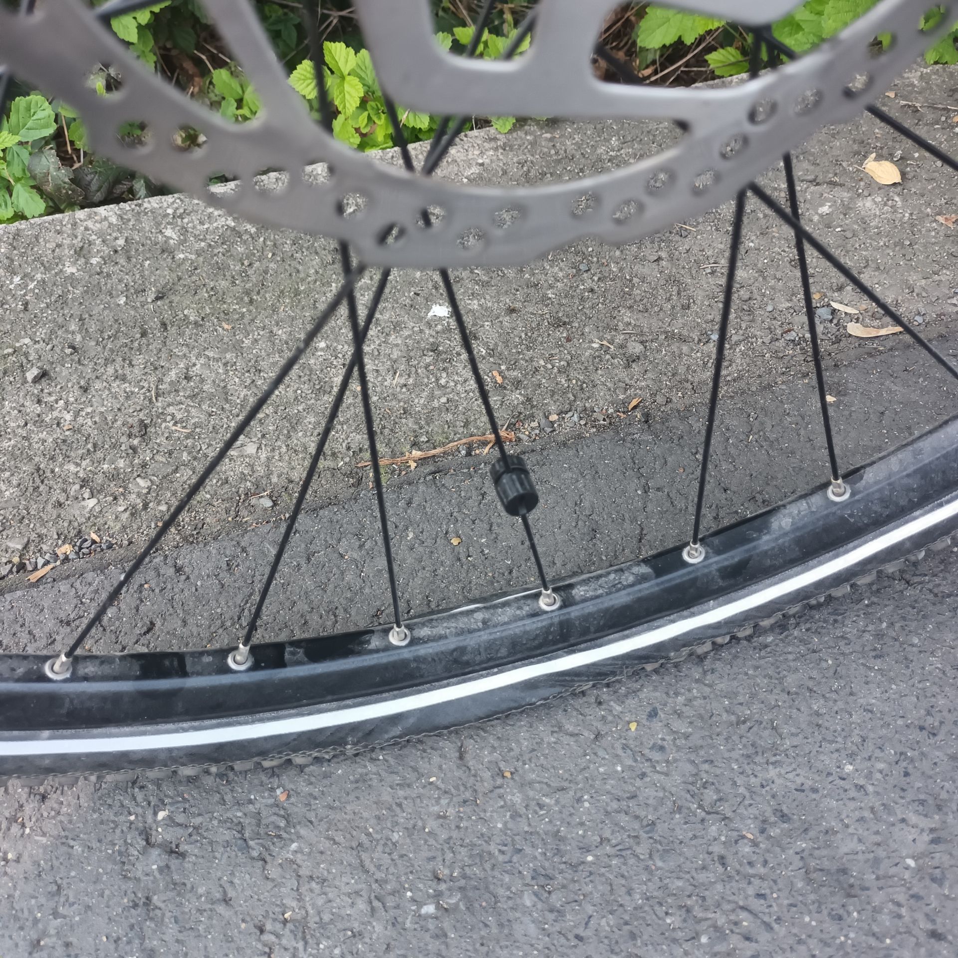 Aujourd'hui, à Dresde, nous avons eu notre première crevaison de notre Tour du Cœur. Le vélo de Linda a probablement heurté un pavé ou un obstacle similaire, ce qui a provoqué une fuite d'air. Heureusement, Uwe avait une bombe anti-crevaison à appliquer dans les pneus. Cela nous a au moins permis de rouler jusqu'au Sonnenstrahl eV (Sunbeam eV) sur la Goetheallee. Là, Uwe et Philipp ont changé la chambre à air du pneu avant.