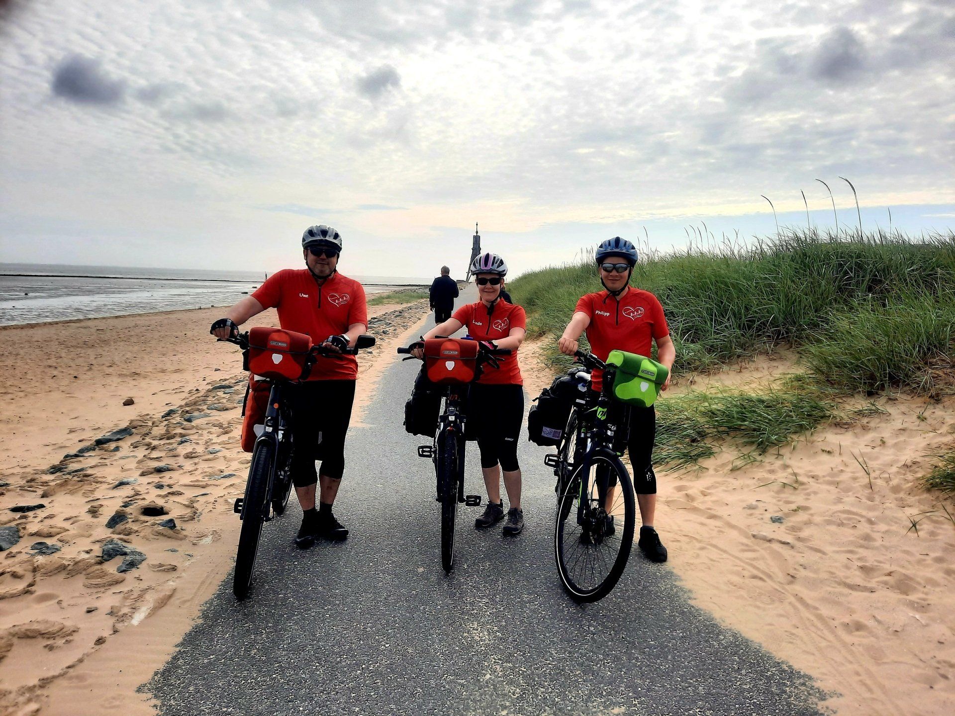 Après un petit-déjeuner tranquille à l'hôtel, nous sommes partis, motivés, à l'assaut de la piste cyclable de la Weser. Nous avons reçu une petite autorisation spéciale et avons pu emmener nos vélos jusqu'au Kugelbake pour une photo.