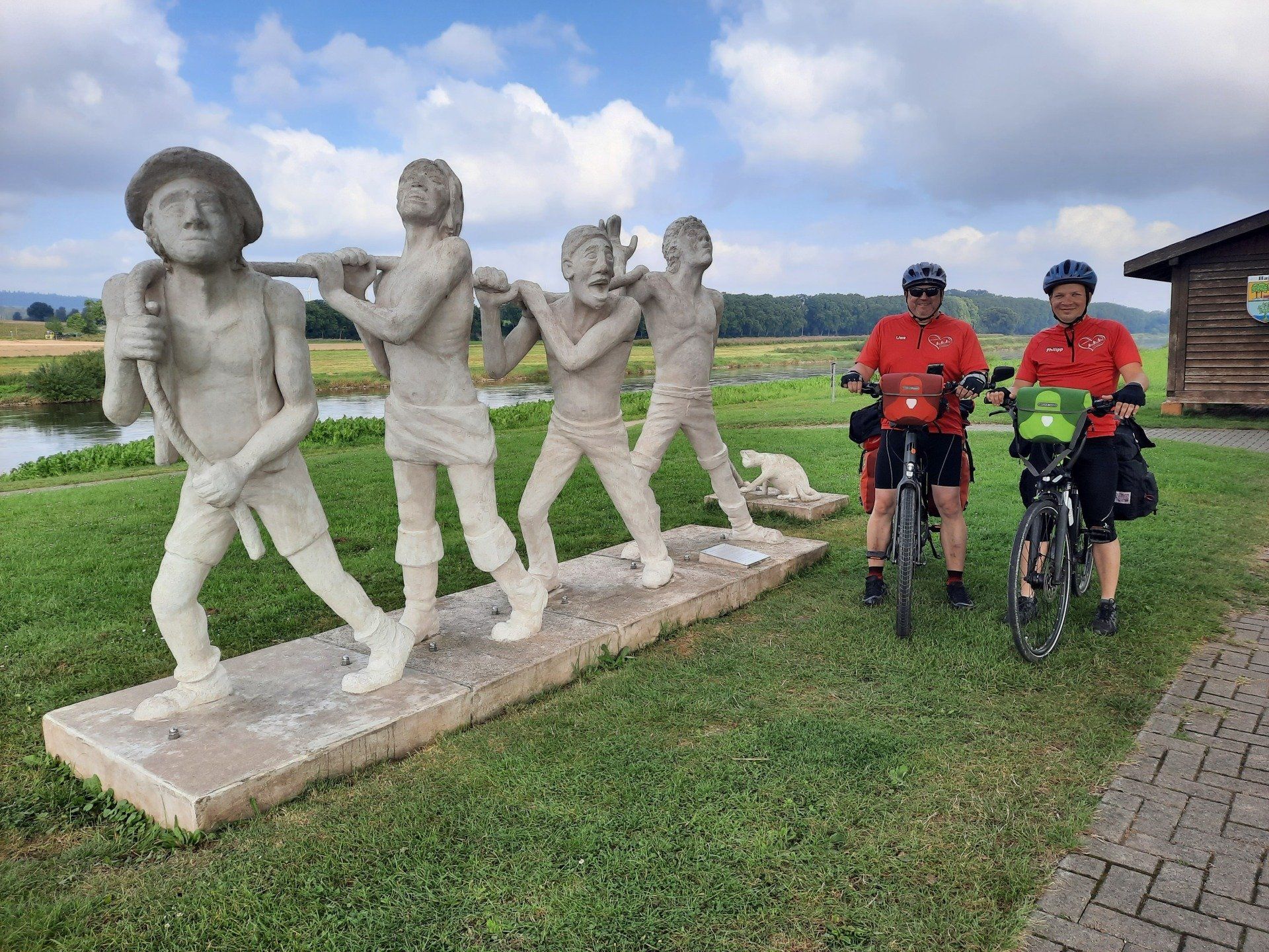 Les sentiments sont partagés aujourd'hui. D'un côté, nous sommes tristes que le Herzenstour 2021 ait atteint son objectif, mais de l'autre, nous sommes heureux d'avoir tenu bon malgré les nombreuses difficultés (vent et pluie) et d'avoir atteint le Weserstein aujourd'hui sous un soleil radieux. Nous sommes partis de Höxter et avons délibérément pris notre temps aujourd'hui. La météo était parfaite.