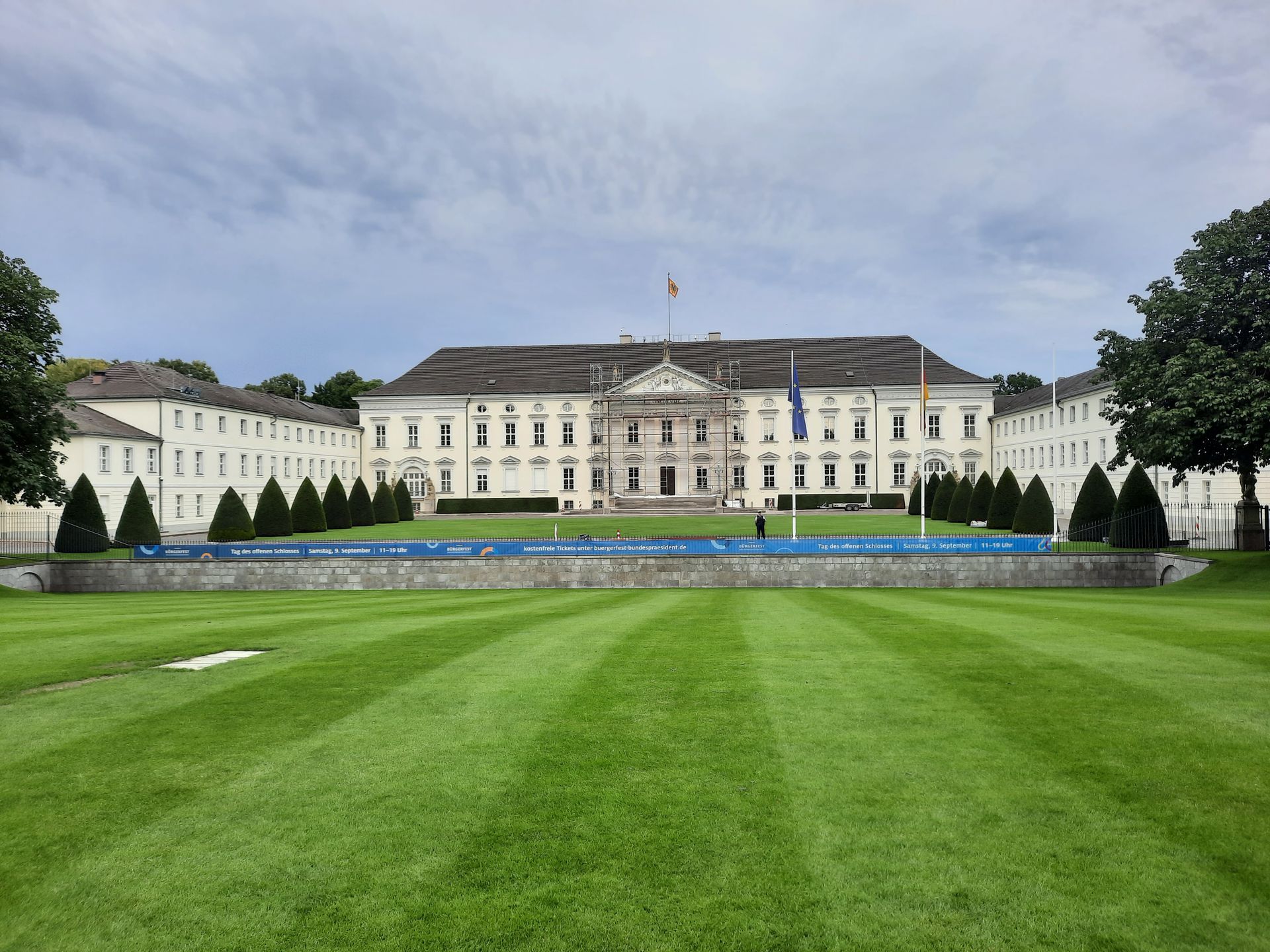 Onze eerste etappe begon vandaag. Na een snelle fotoshoot voor ons hotel, waar zelfs de conciërge van genoot, reden we langs de Siegessäule richting Potsdam. Natuurlijk kon een foto van Slot Bellevue niet ontbreken.