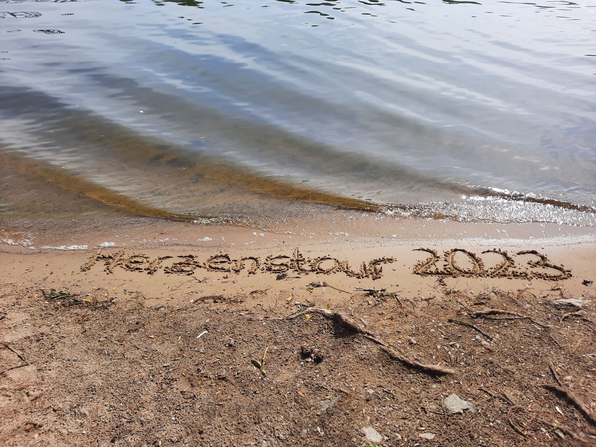 Onderweg kwamen we een paar kunstwerken tegen en Linda stond erop om onze Heart Tour van 2023 in het zand te vereeuwigen.