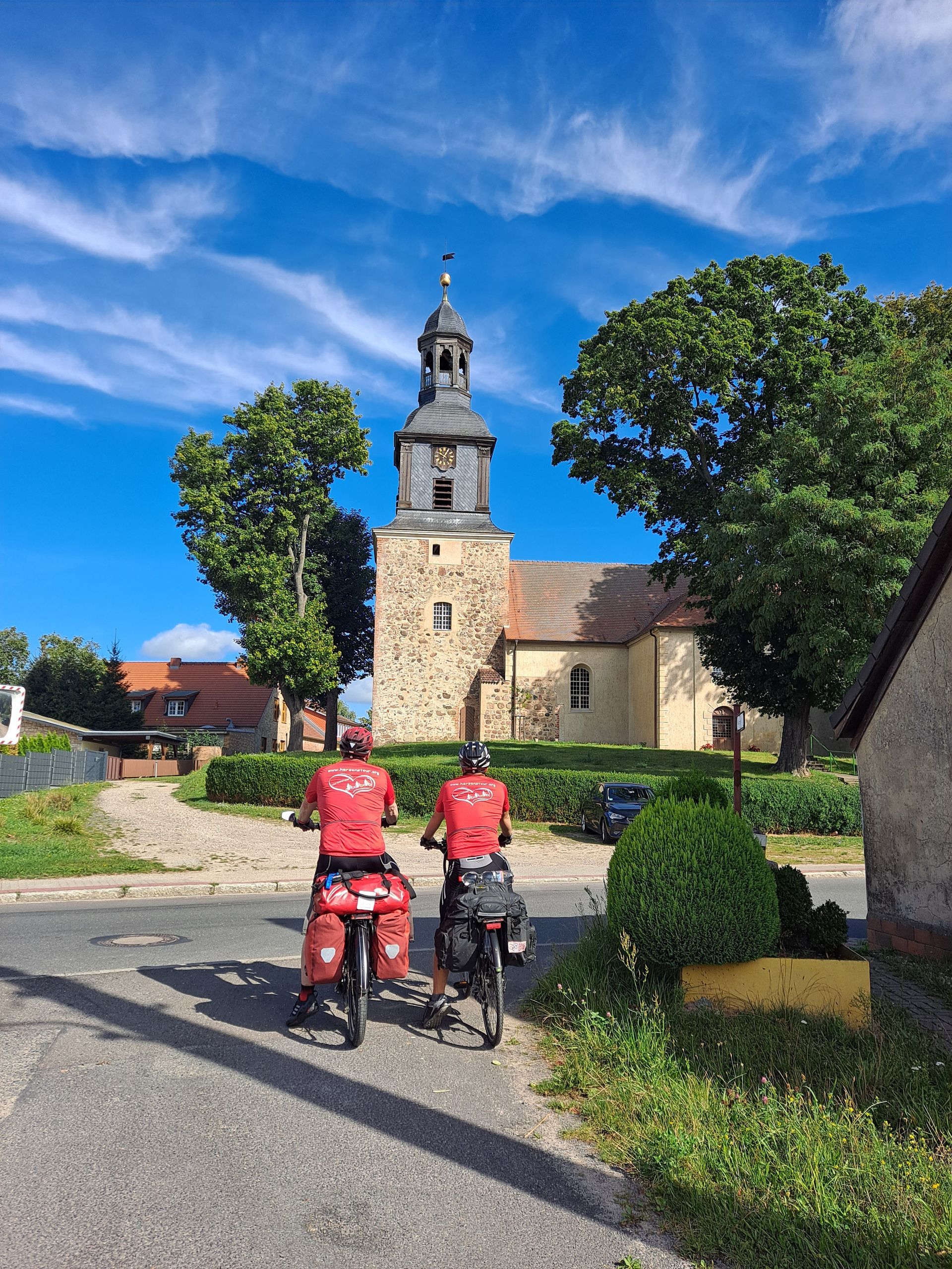 Na een rustig ontbijt begonnen we om 9.15 uur aan onze tocht richting Neuruppin. Het uitzicht vanuit het hotel was die ochtend bijzonder mooi. Na zo'n 30 kilometer hielden we een korte pauze bij de boerderijwinkel van Teichland Linum aan een vijver en verkwikten we onszelf met een koel drankje. Onderweg stopten we bij twee kerken. Beide hadden prachtige orgels. De ingang was echter afgeschermd voor mensen zoals Philipp. ;-)