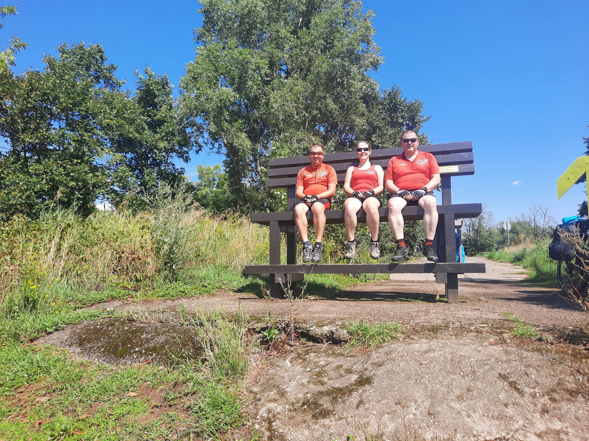 Ondanks ons late vertrek legden we de kilometers relatief snel af, want de fietspaden waren vandaag overwegend goed begaanbaar. Onze route voerde ons door Schönebeck, waar we een kunstwerk konden bewonderen. "In 1997 ontwierp de Deense kunstenaar Anders Nyborg een uniek kunstwerk in opdracht van de Elbufer Förderverein Schönebeck e.V.", aldus de website van Schönebeck.