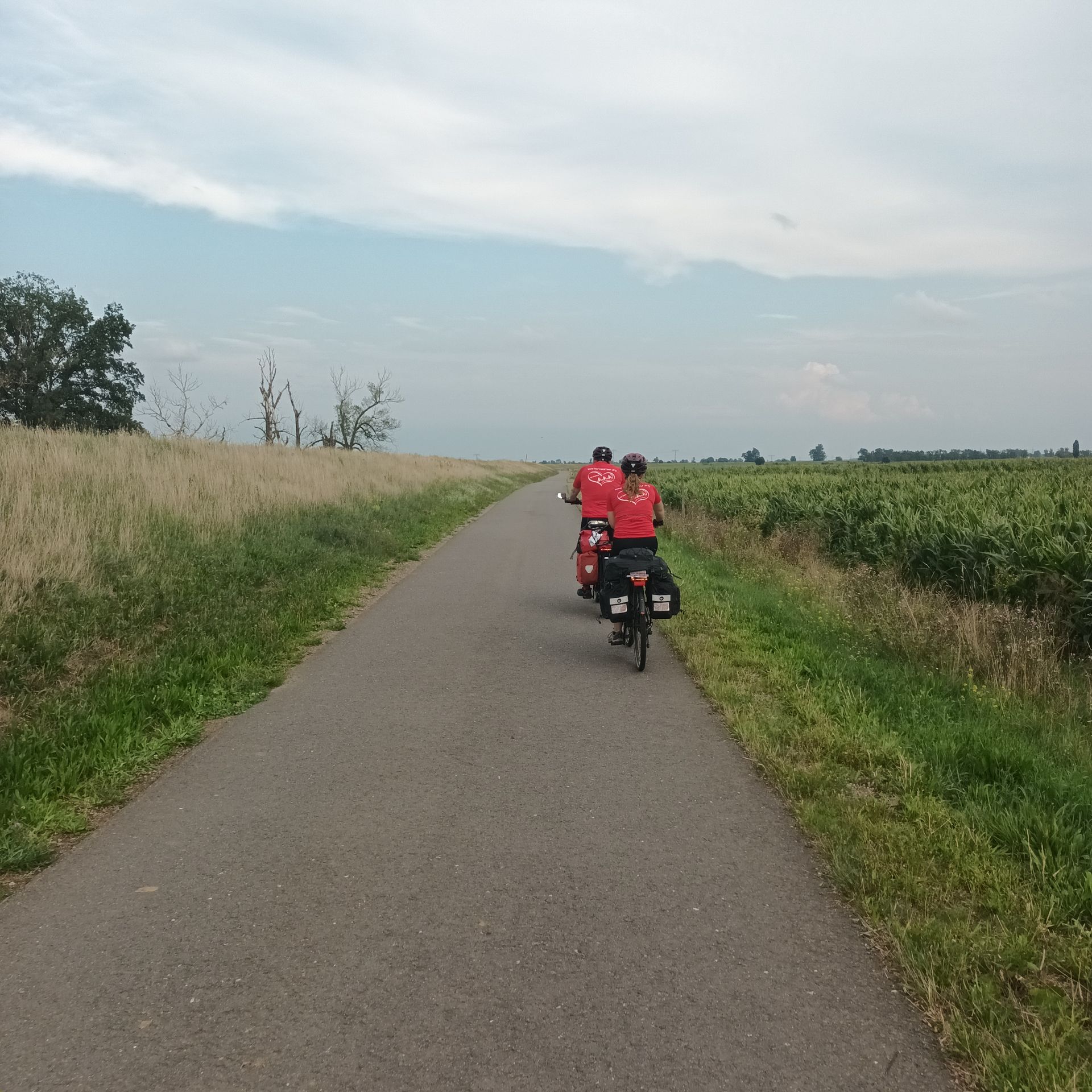 Later filmden we op verschillende locaties. Ze filmden ons tijdens het fietsen, onze pauzes en ons uitzicht op het fietspad. (Hiervoor was een GoPro-camera bevestigd aan het stuur, de fietstassen of tussen de pedalen.) Micha (camera), Christian (geluid) en Mandy (productiemanager) begeleidden ons de hele dag goed. Het was een zeer harmonieuze samenwerking. Het team bedankte ons zelfs voor ons geduld. Na ongeveer 40 kilometer hielden we een pauze in Dommitzsch (district Greudnitz) bij restaurant "Zur Schah Mühle". Restauratrice Steffi Tunger was zo vriendelijk om het team te laten filmen en was zo onder de indruk van ons project dat ze ons zelfs een klein bedrag doneerde. We willen haar daarvoor hartelijk bedanken! Kom gerust eens bij haar langs. In het restaurant namen we afscheid van de tv-ploeg, want alle beelden en het geluid waren verzameld en dat was voor ons voorbij. Het team doneerde ook een klein bedrag.