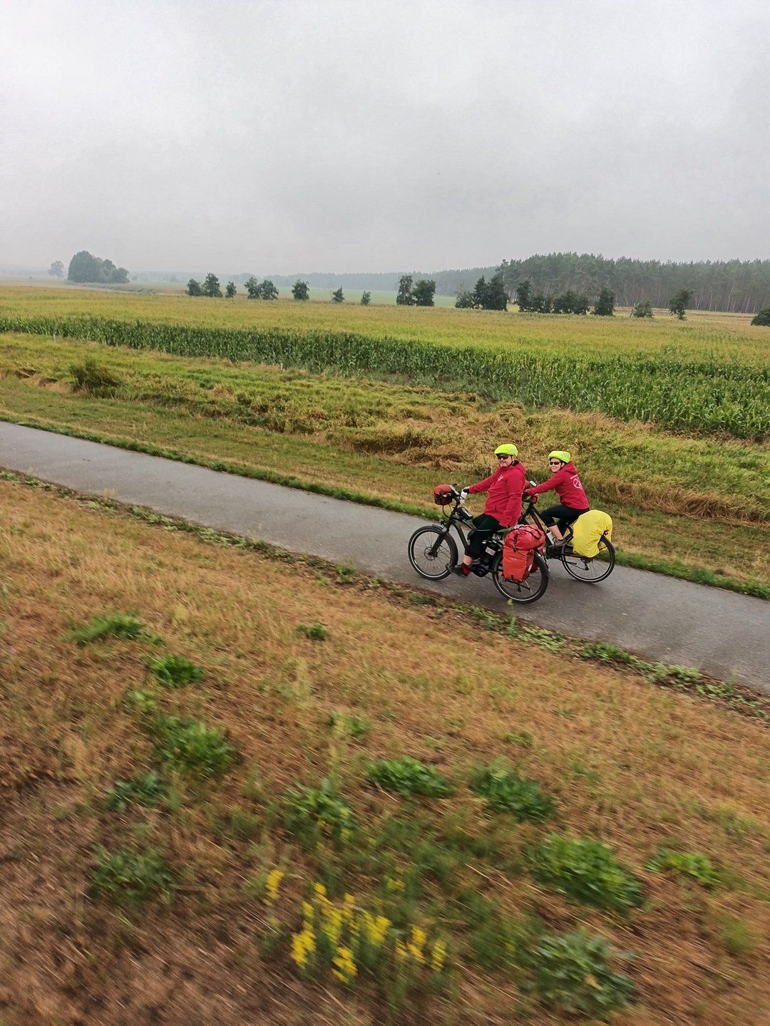 Op de laatste acht kilometer naar Dessau kregen we een lichte bui. Dit motiveerde ons om wat harder te trappen en we bereikten ons hotel in Dessau relatief droog. Op zo'n warme zomerdag als vandaag vonden we de regen helemaal niet erg.