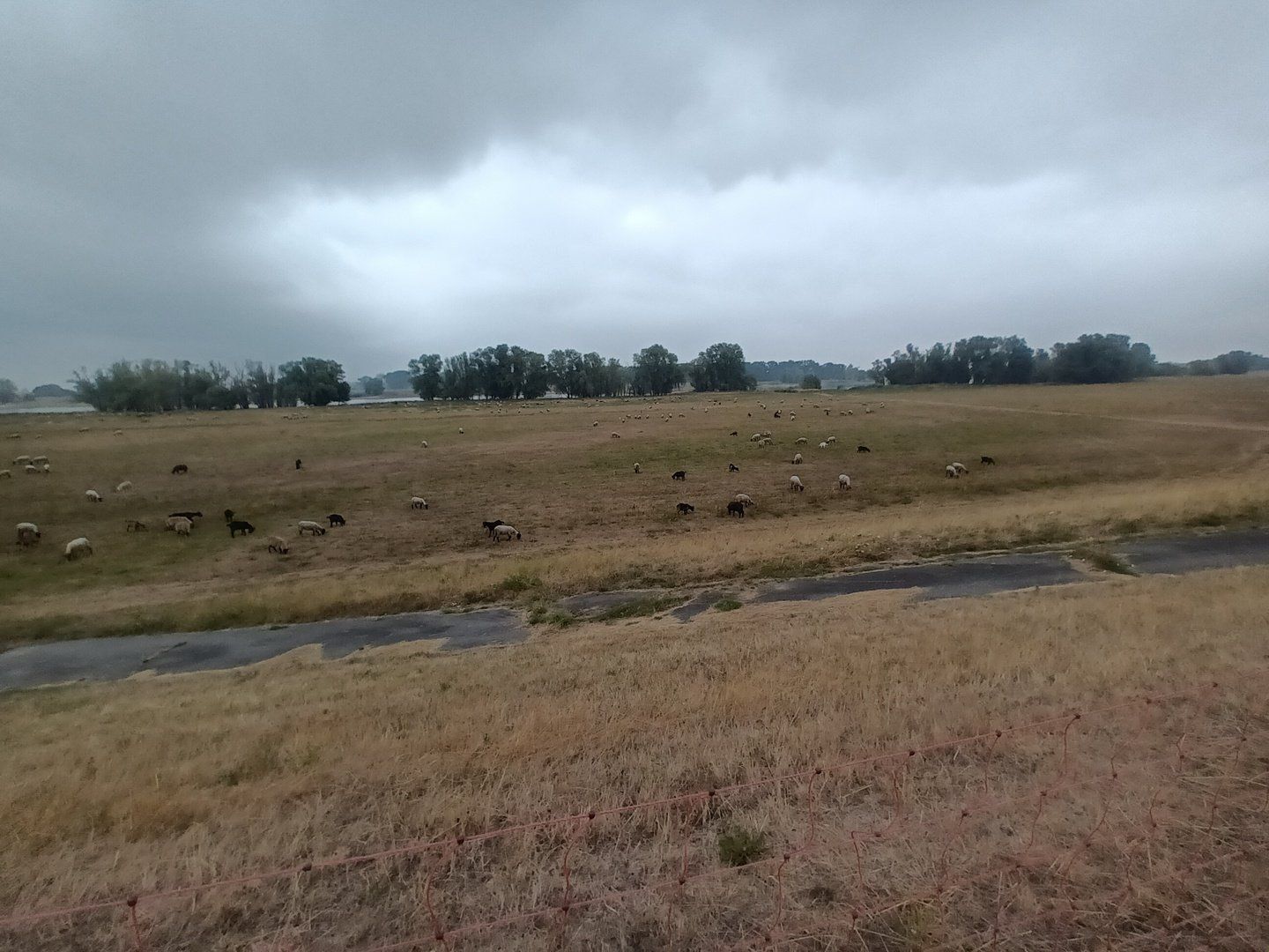 Ongeveer 15 kilometer voor Hitzacker hielden we nog een korte koffiepauze aan de Elbe, want de route was vandaag zwaarder dan de andere dagen. Tot nu toe hebben we geen schapen op het fietspad gezien, maar vandaag wel een paar.