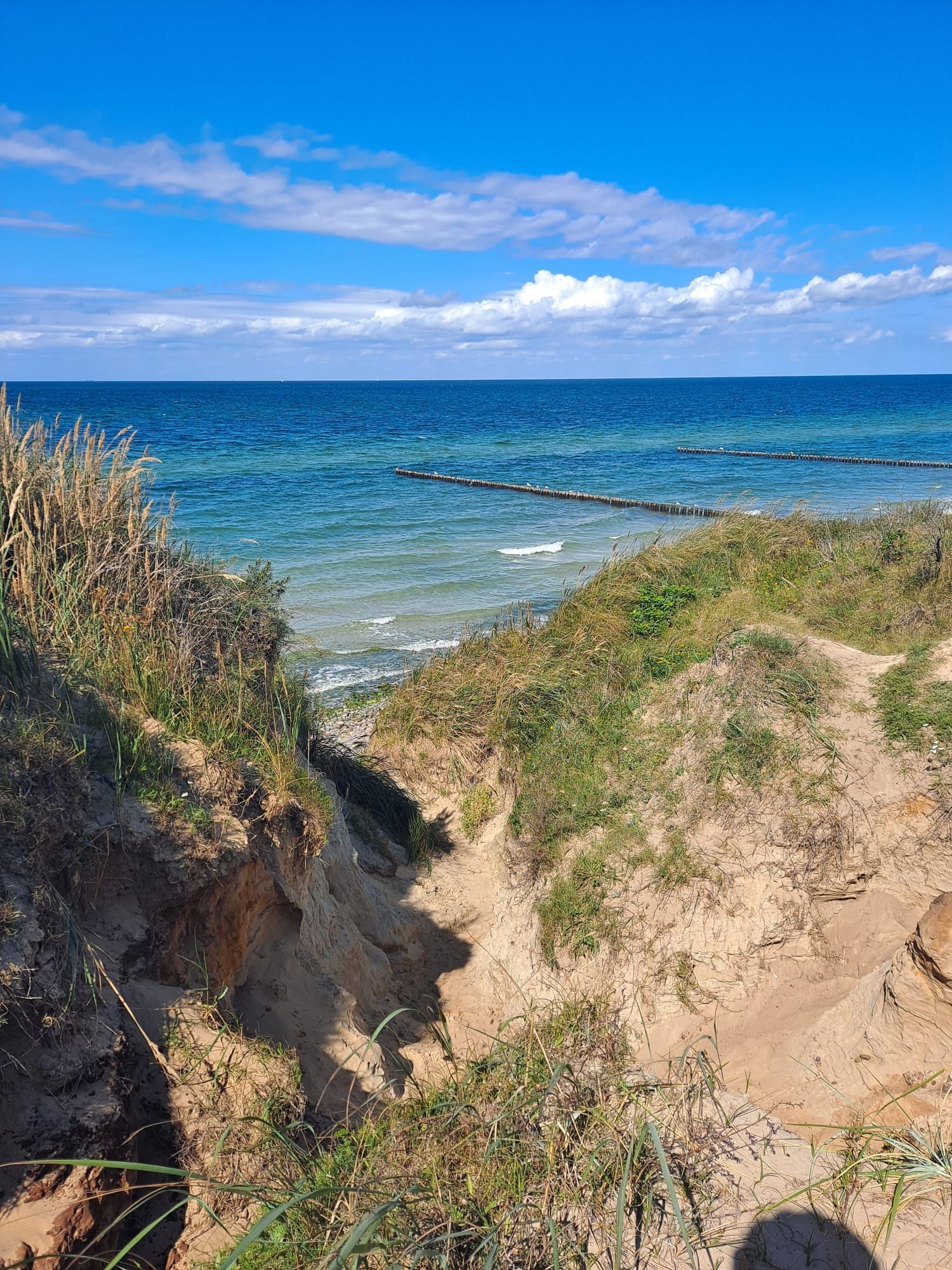 Na een vroeg ontbijt gisteren trakteerden we onszelf vandaag op een later opstaan, want Philipp had wat meer slaap nodig omdat hij zich wat misselijk begon te voelen en een lichte reut in zijn longen had. We verlieten ons hotel, dat gebouwd is van zeecontainers. De Dock Inn sponsorde ook onze overnachting als onderdeel van de tour. We reden door de stationstunnel richting de haven. De cruiseschepen waren toen allemaal vertrokken. Ons eerste hoogtepunt was de veerboot naar Hohe Dühne. We namen een korte cakepauze in een café aan de pier in Graal-Müritz.