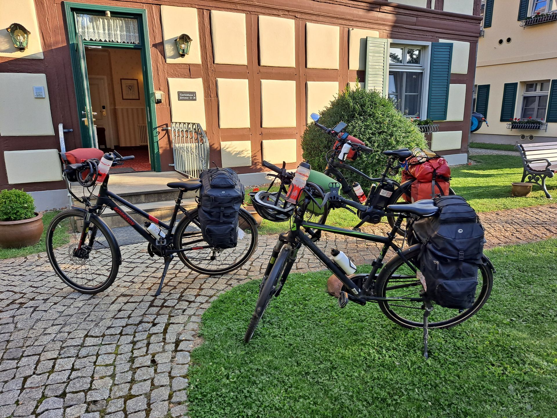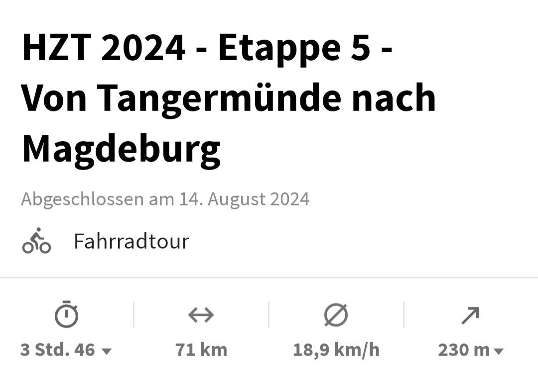 O dia de hoje começou de forma muito diferente para nós. Ontem à noite, já estávamos na torre da Igreja de Santo Estêvão em Tangermünde e, ontem à noite, surgiu a ideia de apreciar o nascer do sol da torre da igreja. Colocamos essa ideia em prática esta manhã, e o que podemos dizer: por mais extenuante que a subida tenha sido a esta hora da noite, definitivamente valeu a pena. Como já tínhamos acordado cedo, tomamos café da manhã cedo e pudemos partir para Magdeburg bem cedo hoje. Afinal, um dia muito quente nos esperava hoje, então nossa prioridade era chegar a Magdeburg o mais cedo possível.