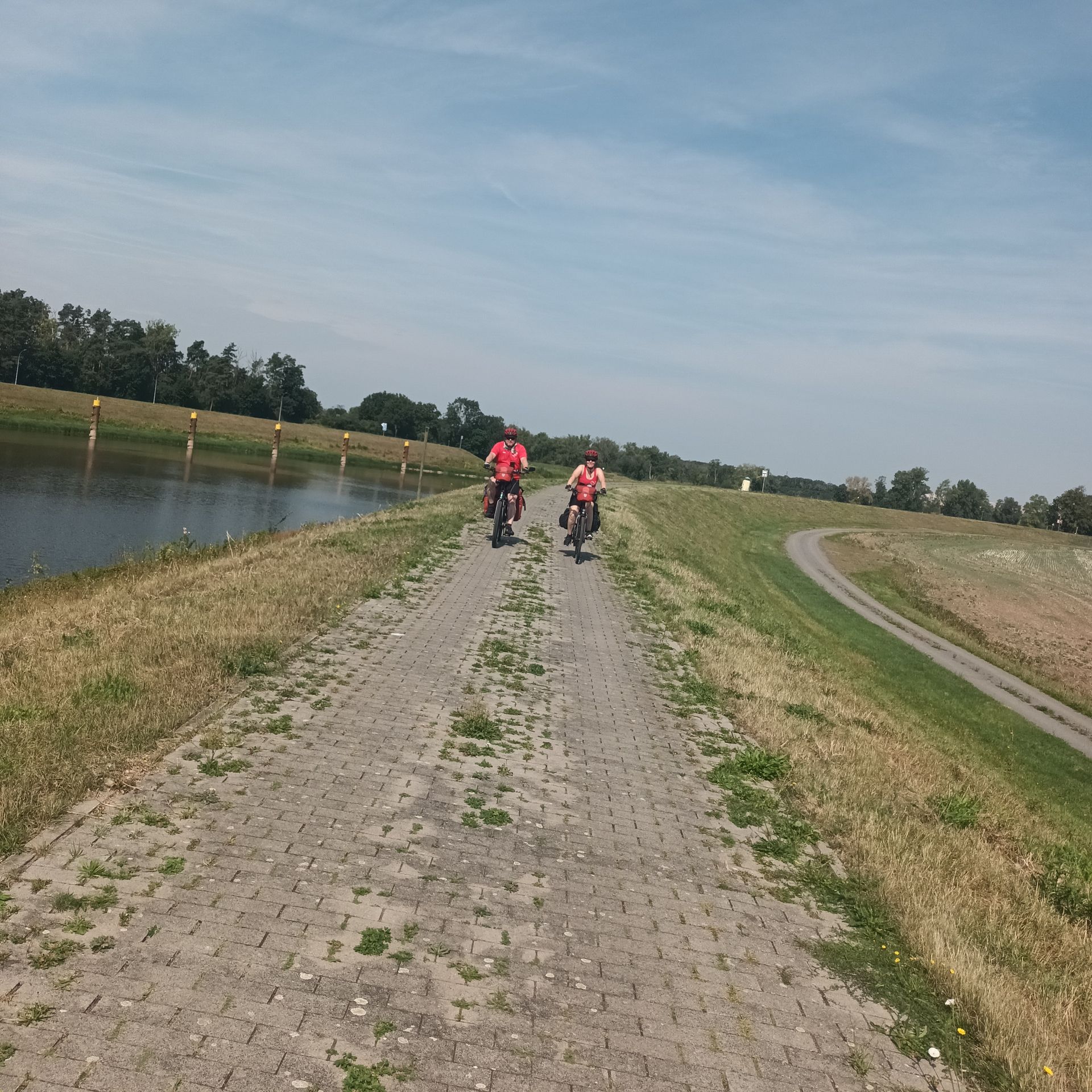 O primeiro destino do trecho da rota foi a balsa Rogätz, à qual chegamos rapidamente. Após a travessia, a Ciclovia do Elba foi subitamente fechada. No entanto, arriscamos e ignoramos a barreira, e felizmente conseguimos continuar pela trilha como de costume. Caso contrário, teríamos perdido vários quilômetros de desvio.