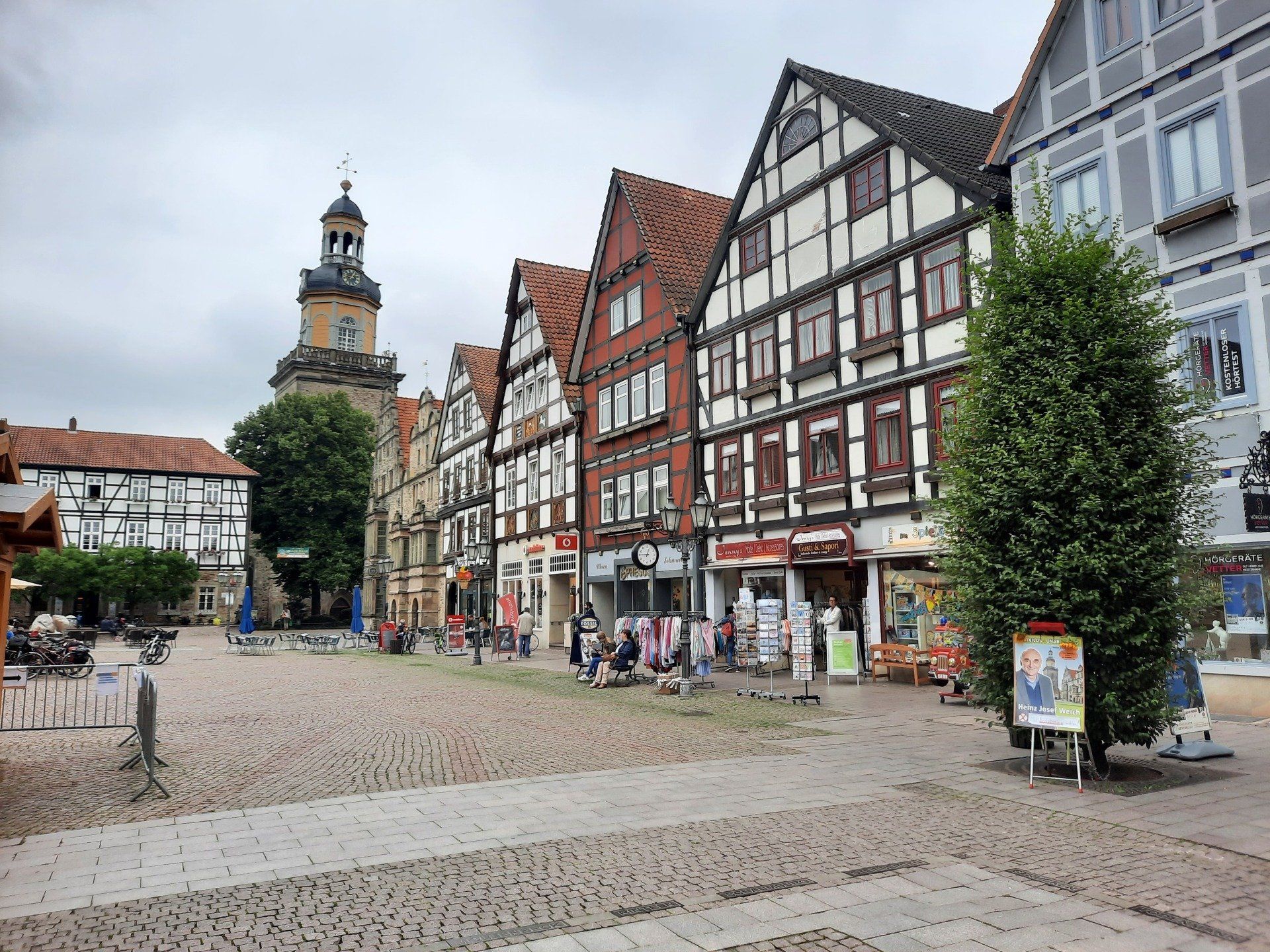 Depois de completar mais da metade do percurso, fizemos uma pausa na encantadora cidade de Rinteln. Lá, nos revigoramos com um currywurst e exploramos o centro histórico.