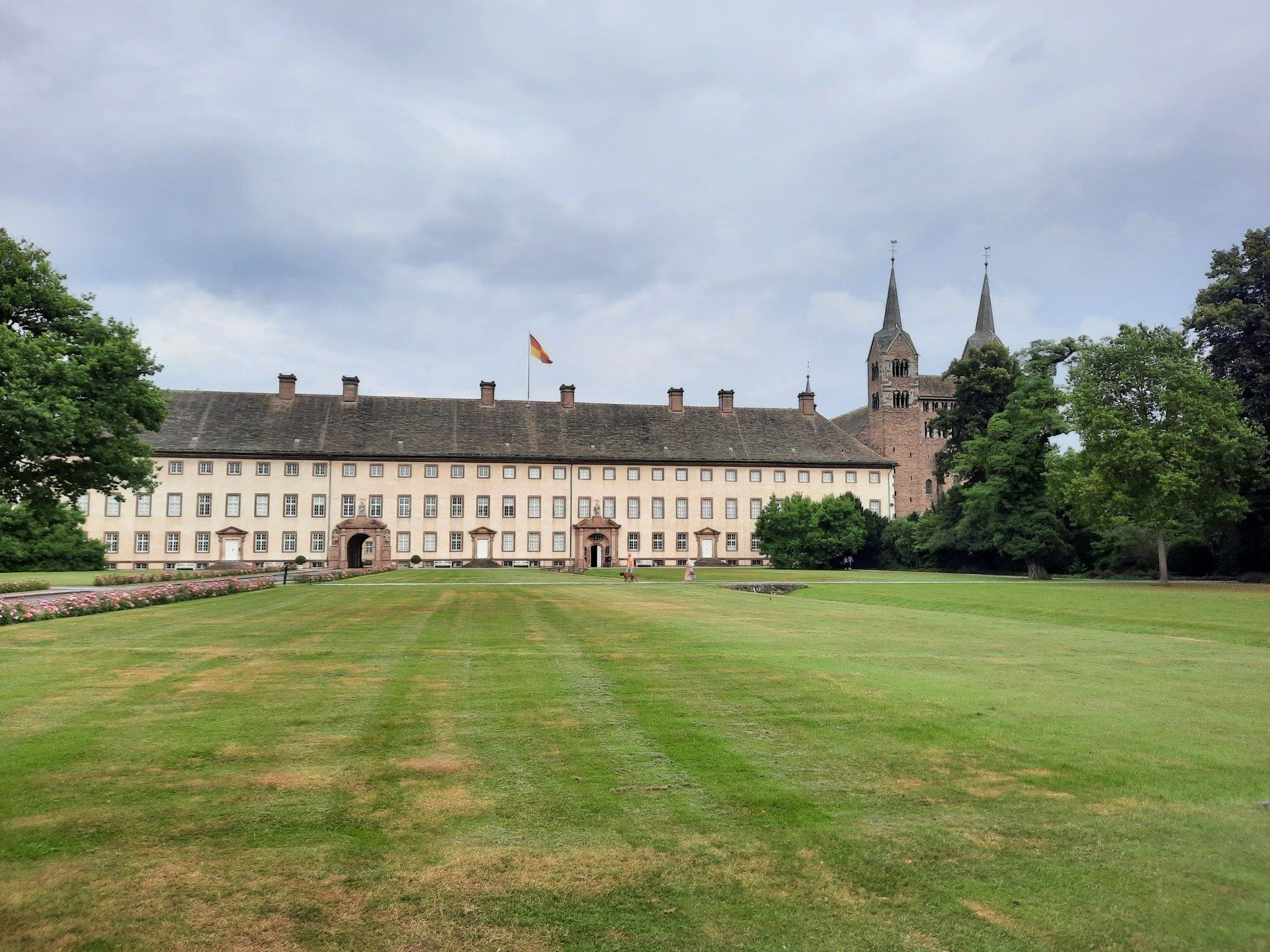 Quando chegamos a Höxter, visitamos o Castelo de Corvey (Patrimônio Mundial da UNESCO desde 2014). Infelizmente, não tivemos tempo de explorá-lo mais detalhadamente hoje. É um famoso mosteiro do século IX com um palácio barroco e uma grande biblioteca.